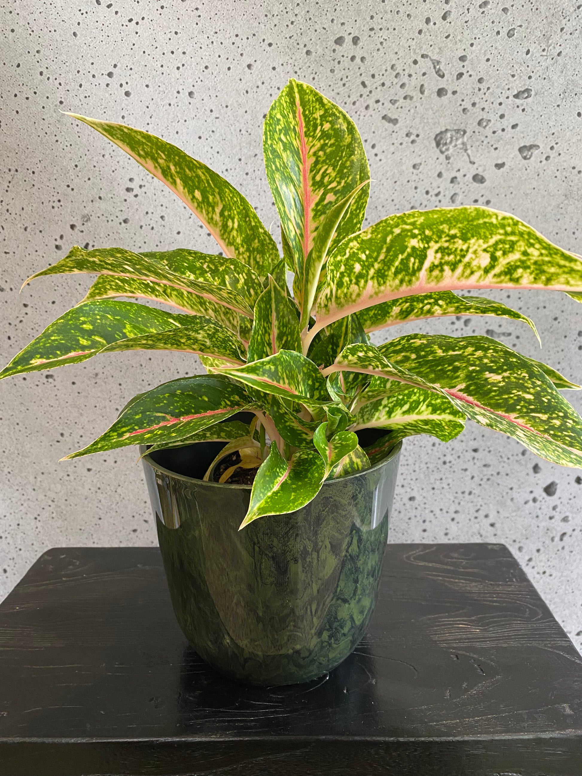 Also known as 'Chinese Evergreen', this plant is a striking tropical perennial native to Southeast Asia. The Night Sparkle is characterised by its long, pointed leaves of bright green with white and pink variegation throughout, a lovely subtle pop of colour amongst any plant collection.