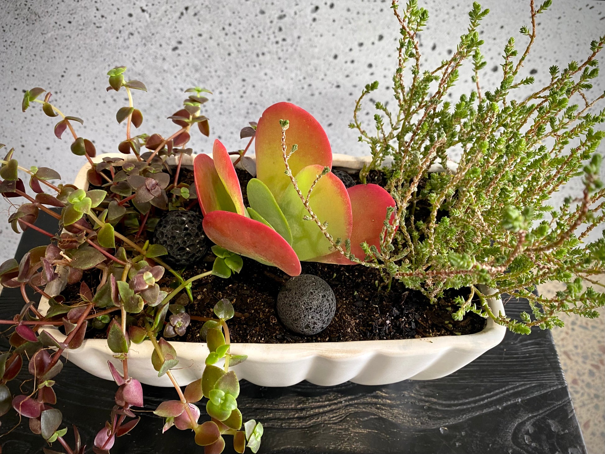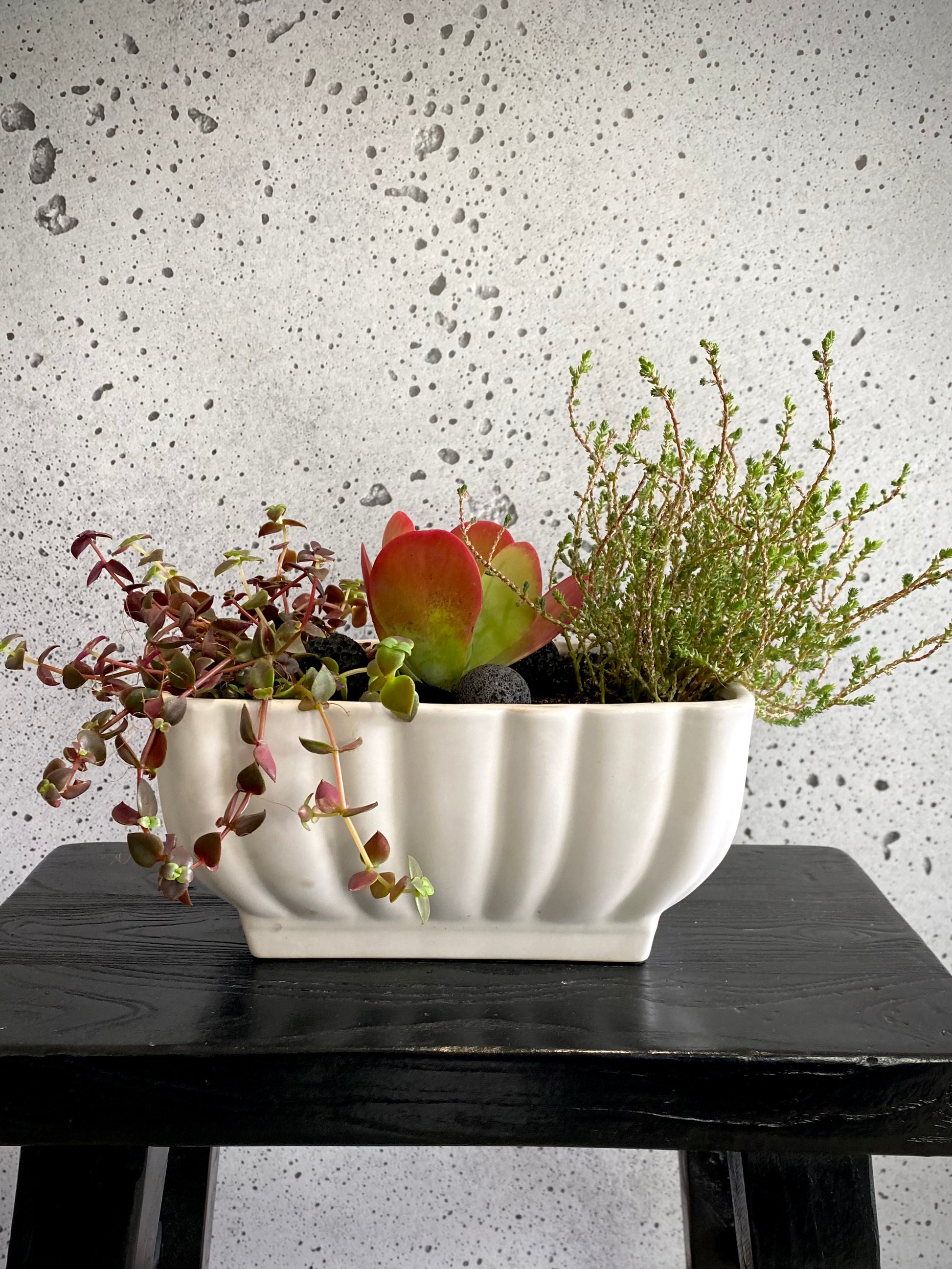 Cute succulent set in our wide Grecian planter.