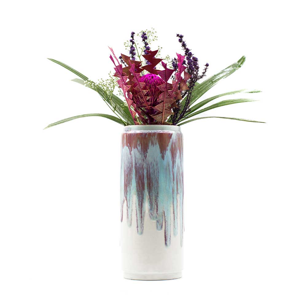 This is a simple yet classic style vase that is perfect for the taller floral arrangements you wish to display. Its smooth vertical surface offers a unique canvas for potters to work their magic with our more runny glazes.